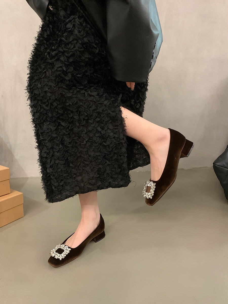 パンプス スクエアトゥ 太ヒール フレンチスタイル ラインストーン付き 気品溢れる 通勤 フェミニン おしゃれ きれいめ系 レディース デイリーコーデ ID341